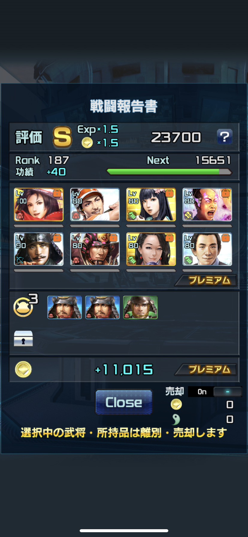 『1人撤退で特殊系55%UP+豪傑系20%+スキル系20%+無欠武器100%』
