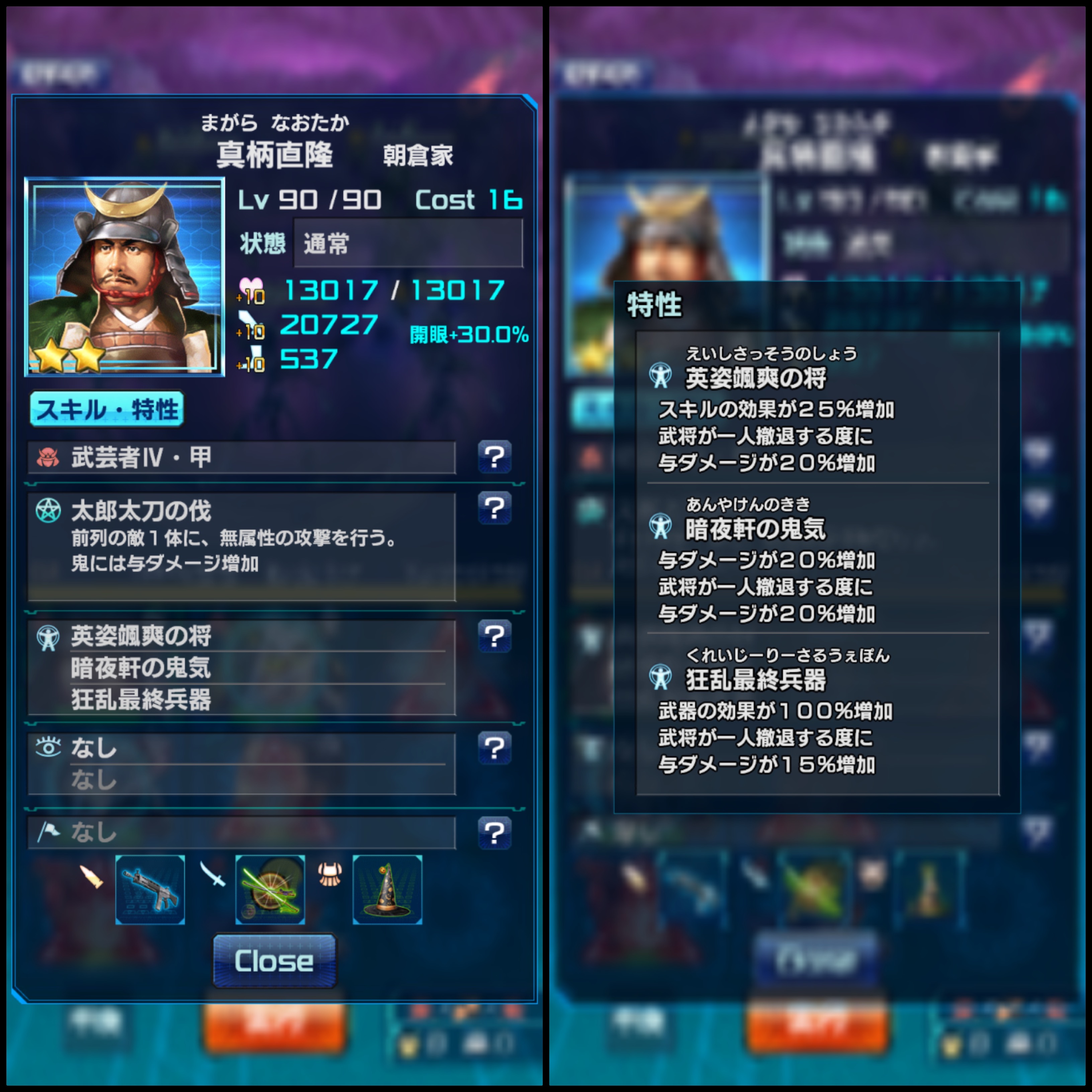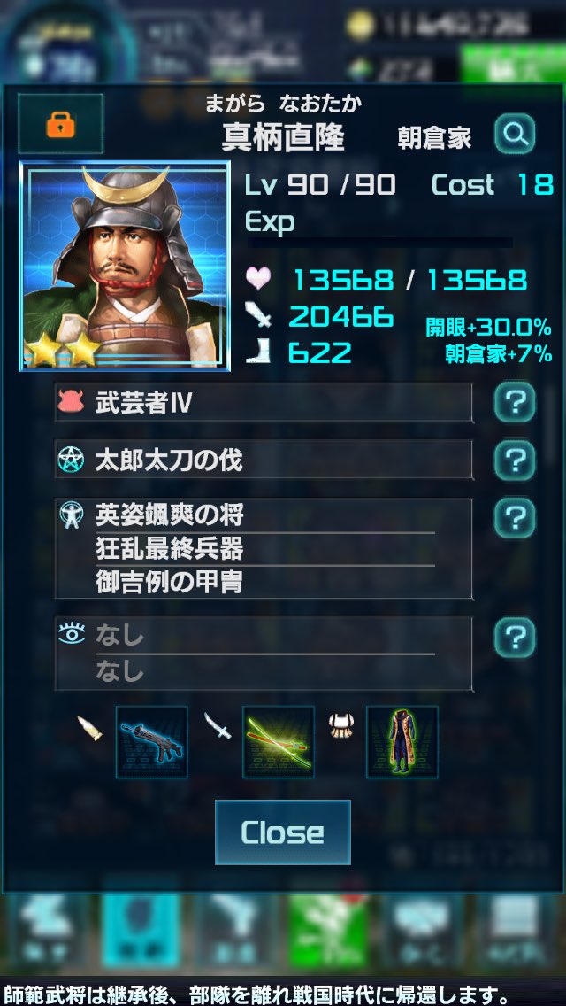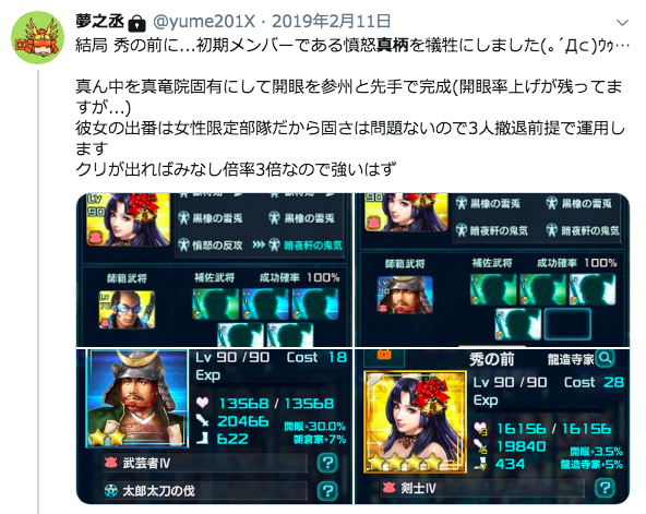 〝憤怒の反攻(☆3)〟+〝百戦錬磨の将(勾玉)〟+〝猿飛開悟(降臨)〟